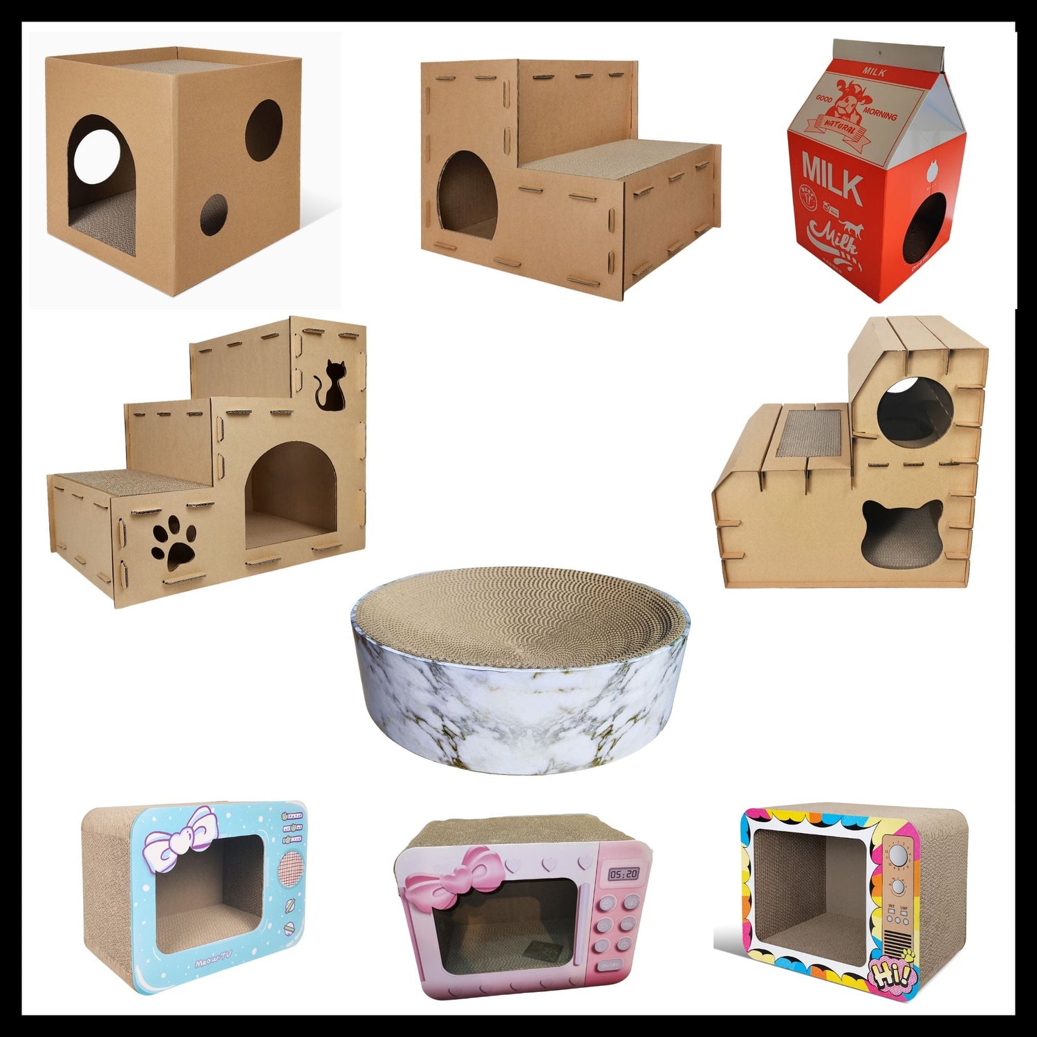 Rascadores para gatos, casas para gatos. Rascadores de cartón, de cuerda y casas de cartón, madera y tela.